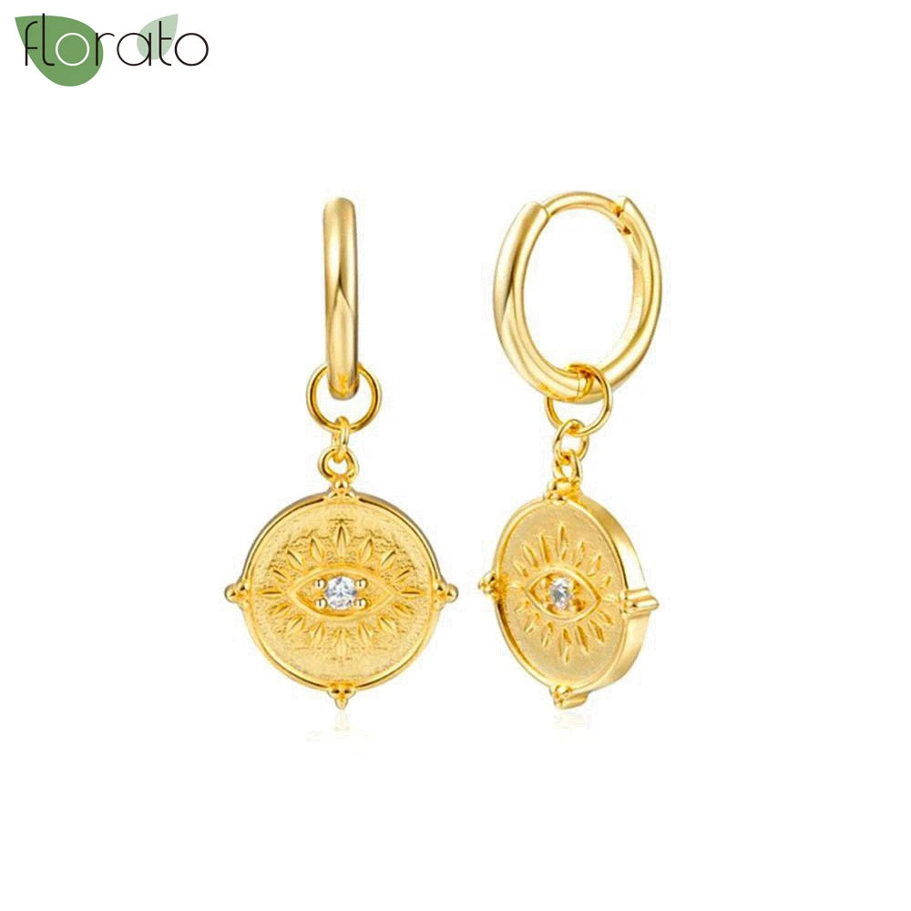 925 Sterling Silver Needle Vintage Gold Hoop Earrings – Evil Eye Pendant Jewelry for Women