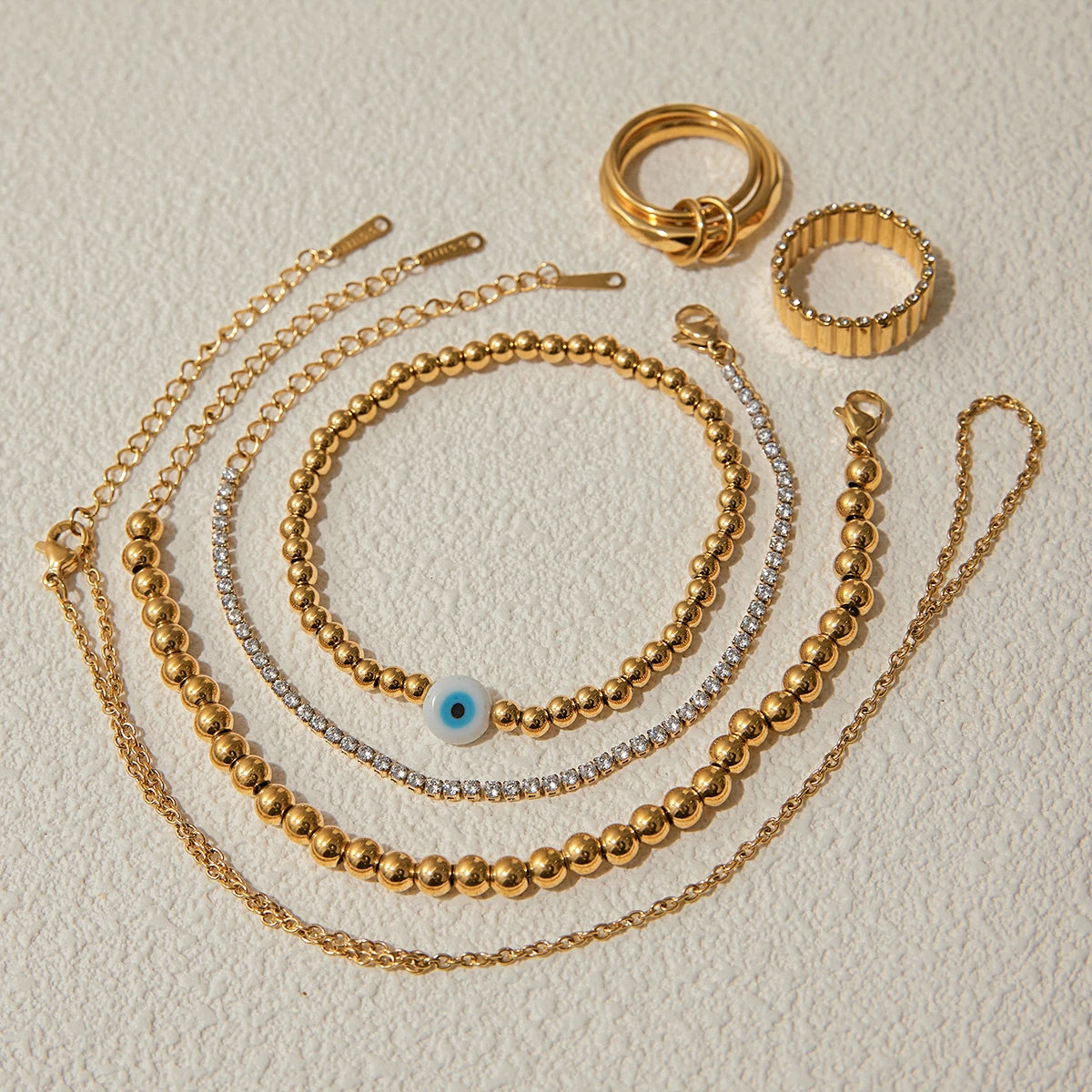 Elevate your accessory game with the Uworld Fashion Finger Bracelet & Stackable Ring Set, featuring a stylish sheep horn bag ring design and sleek stainless steel chain — a modern twist on boho-chic jewelry.